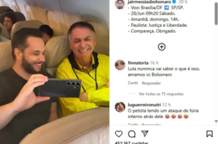 Dezenas de passageiros de um voo comercial de Brasília para São Paulo aplaudiram o ex-presidente Jair Bolsonaro e fizeram fila neste sábado (28) para cumprimentar e tirar selfies com ele. As imagens do apoio recebido dentro da aeronave foram publicadas pelo ex-presidente em seu perfil no Instagram com um convite para que o Brasil compareça ao ato na Avenida Paulista …