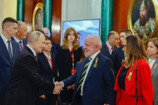 O presidente Luiz Inácio Lula da Silva (PT) participou nesta quinta-feira (8) de um jantar oficial oferecido pelo ditador da Rússia, Vladimir Putin, no Kremlin, em Moscou. O Palácio do Planalto divulgou imagens do encontro. “Hoje, participei da recepção oferecida pelo presidente Vladimir Putin aos chefes de Estado que estão na Rússia para a comemoração dos 80 anos do Dia …