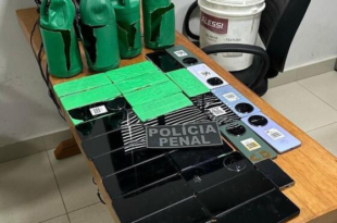Polícia penal flagra 29 celulares escondidos em frascos de água sanitária