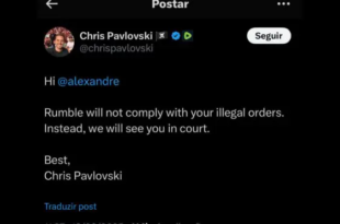 O CEO da plataforma de vídeos Rumble, Chris Pavlovski, fez uma publicação na rede social X, nesta quarta-feira (19), após a revelação de que a sua empresa está entrando com uma ação judicial ao lado do conglomerado de mídia do presidente Donald Trump contra o ministro Alexandre de Moraes, do Supremo Tribunal Federal (STF). A existência do processo foi confirmada …