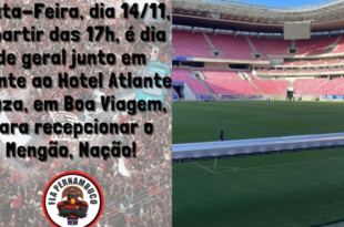 Flamengo desembarca no Recife na sexta-feira (14) O Flamengo volta a campo no próximo sábado (14) para enfrentar o Sport, em jogo atrasado da 12a rodada do Brasileirão. A partida vai acontecer na Arena de Pernambuco, na Região Metropolitana do Recife. A delegação rubro-negra terá apoio da Nação, com um ‘AeroFla’, após o desembarque na véspera. A torcida ‘Fla Pernambuco’ …
