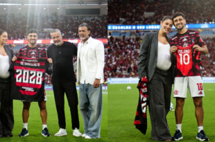 Por que Arrascaeta foi homenageado no Maracanã? O Flamengo anunciou, nesse sábado (08), a renovação de contrato com Arrascaeta. Desse modo, o novo vínculo entre o clube e o ídolo uruguaio vai até 2028, com possibilidade de extensão até 2029. Com isso, o camisa 10 celebrou a marca no gramado do Maracanã. 🖼️🇺🇾 Ao lado da família, De Arrascaeta recebe …