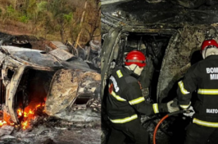 Reprodução O acidente ocorreu por volta das 16h50, na região da Serra do Cacho Reprodução O acidente ocorreu por volta das 16h50, na região da Serra do Cacho GUSTAVO CASTRO DO REPÓRTERMT Um homem ainda não identificado morreu carbonizado após o caminhão que conduzia tombar e pegar fogo às margens da BR-174, em Mirassol D’Oeste (a 300 km de Cuiabá), …