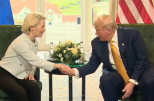 Durante encontro realizado neste domingo (27) na Escócia, o presidente dos Estados Unidos, Donald Trump, anunciou um novo acordo comercial com a União Europeia. Em vez dos 30% inicialmente previstos, será aplicada uma tarifa de 15% sobre as exportações do bloco europeu aos EUA. A reunião foi realizada com a presidente da Comissão Europeia, Ursula von der Leyen. Segundo Trump, …