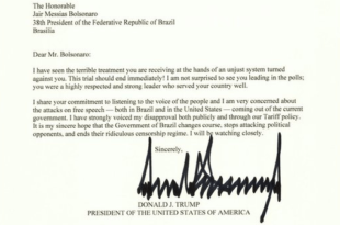 Ler mais »Trump envia carta a Bolsonaro e critica tratamento dado ao ex-presidente no Brasil