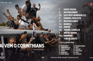 Como chega o Corinthians para final da Supercopa? Flamengo e Corinthians medem forças neste domingo (01), no Estádio Mané Garrincha, pela Supercopa do Brasil. Antes da partida começar, o técnico Dorival Júnior definiu a escalação do time paulista para enfrentar o Mengão. Fotos: Divulgação/Corinthians Qual é a escalação do Corinthians? Titulares: Hugo Souza; Matheuzinho, Gustavo Henrique, Gabriel Paulista e Matheus …