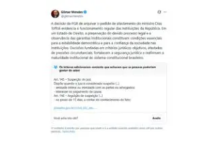 Ler mais »Gilmar Mendes volta a defender Toffoli nas redes sociais
