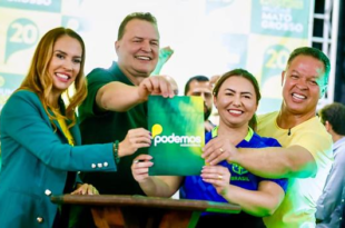Reprodução Ao lado do esposo, o prefeito do município, Cláudio Ferreira (PL), ela oficializou sua pré-candidatura a deputada estadual. Reprodução Ao lado do esposo, o prefeito do município, Cláudio Ferreira (PL), ela oficializou sua pré-candidatura a deputada estadual. DO REPÓRTERMT A secretária de Promoção e Assistência Social de Rondonópolis (a 218 km de Cuiabá), Alessandra Ferreira, filiou-se ao Podemos na …