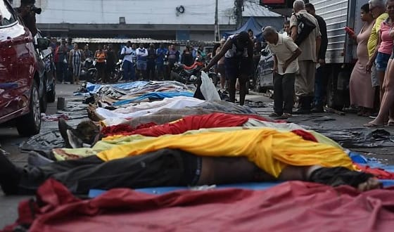 Ao todo, 50 corpos foram recolhidos e levados para a Praça São Lucas, na Estrada José Rucas, uma das principais vias da região, ao longo da madrugada desta quarta-feira (29/10).