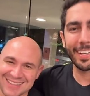 “Vocês não acreditam o que o prefeito de Cuiabá vai fazer, gente. Eu tô de cara, que cara excepcional. Olha o que esse cara veio fazer”, comenta Jonathan enquanto Abilio chega com uma sacola nas mãos.