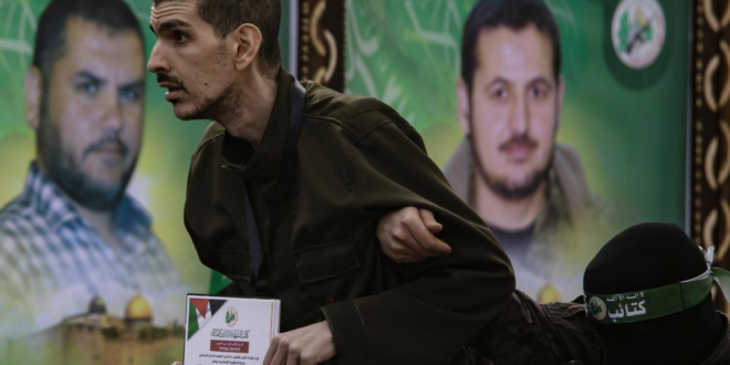 Os três israelenses liberados neste sábado (8) , Ohad Ben Ami, Eli Sharabi e Or Levy, pareciam muito magros, com aparência séria e envelhecida após mais de um ano em cativeiro em Gaza, quando foram levados a um palco por combatentes do Hamas antes de serem entregues ao Comitê Internacional da Cruz Vermelha (CICV).