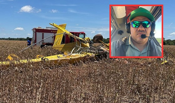 Um avião agrícola caiu na manhã de hoje (9) em uma lavoura de soja, em uma fazenda no município de Lucas do Rio Verde (a 333 km de Cuiabá), em Mato Grosso. A aeronave ficou completamente destruída, e o piloto, identificado como Elessandro Nunes, ficou preso às ferragens. Ele não resistiu aos ferimentos e morreu.