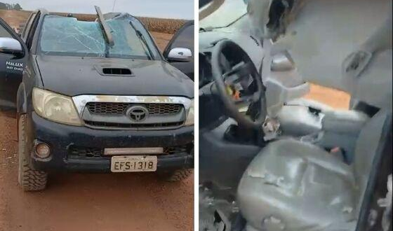 Nesse momento, os pneus do avião teriam atingido uma caminhonete, que era ocupada por três pessoas. Ao perceber o que tinha acontecido, pousou a aeronave.