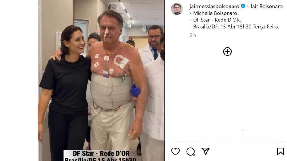 Bolsonaro voltou a caminhar pelos corredores do hospital com auxílio da ex-primeira-dama Michelle, sem o andador.