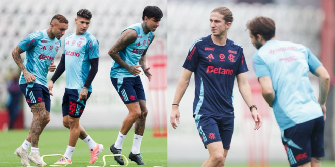 Dessa forma, no CT, Filipe Luís define o time titular do Flamengo que enfrenta o Atlético-MG. Vale registrar que, apesar da provável escalação mencionada acima, o treinador rubro-negro pode mandar a campo um time diferente.