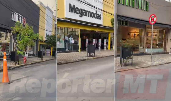 As calçadas da Rua 13 de Junho no Centro de Cuiabá amanheceram, nesta quinta-feira (05), sem as banquinhas de ambulantes que lotavam o espaço de passagem de pedestres.
