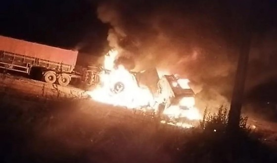 Com a colisão frontal, duas das carretas pegaram fogo imediatamente. Claudio ficou preso às ferragens e morreu carbonizado no local. O Corpo de Bombeiros foi acionado para combater o incêndio e realizar o desencarceramento da vítima, que foi encaminhada ao Instituto Médico Legal (IML).