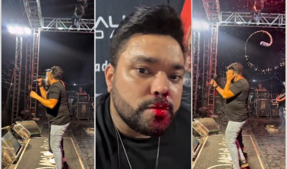 Ao ser atingido o cantor ficou assustado e o show foi interrompido. É possível ver também que o cantor ficou ferido e com o nariz sangrando.