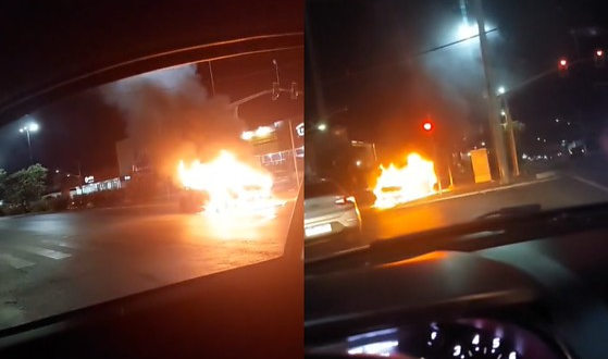 Um carro pegou fogo e ficou completamente destruído na madrugada de hoje (30) na Avenida Fernando Corrêa, no bairro Boa Esperança, em Cuiabá. Um vídeo que circula nas redes sociais mostra o momento em que as chamas consomem o veículo.