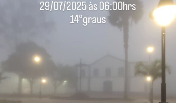 A nova frente fria já chegou em Chapada dos Guimarães (67 km de Cuiabá), e a cidade amanheceu nesta terça-feira (29), coberta por uma densa neblina. Os termômetros no município registram 14 graus.