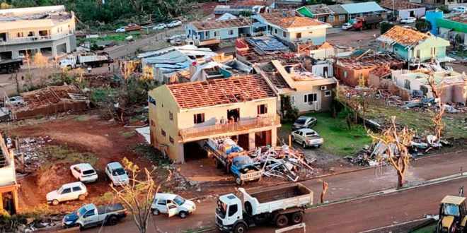 A cidade de Rio Bonito do Iguaçu, no centro-sul do Paraná, teve 90% de suas residências e estabelecimentos comerciais destruídos por um tornado na última sexta-feira (7). A situação pode fazer com que o município tenha acesso a recursos federais, tramitações simplificadas e, em muitos casos, flexibilização de regras orçamentárias, desde que seja decretado estado de calamidade pública.
