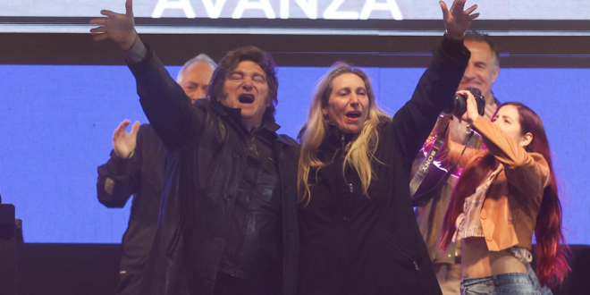 “Em total desespero, eles [peronistas] estão atrás da minha família. Imaginem como devem estar as coisas na província de Buenos Aires, a ponto de mexerem com a minha irmã. Eles estão assustados, e no domingo vamos pintar a província de roxo”, afirmou Milei no comício, citando a cor-símbolo do LLA.