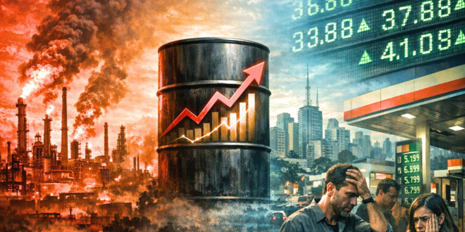 A escalada militar no Oriente Médio, com ataques contra o Irã, fez o preço do petróleo disparar, superando os US$ 100 nesta segunda-feira (9). O movimento atinge diretamente o Brasil, pressionando a inflação e ameaçando o planejamento do governo para o primeiro trimestre de 2026.