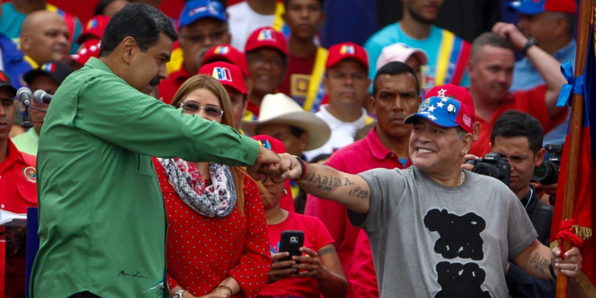 O craque argentino Diego Maradona (1960-2020), que adorava um ditador – tinha tatuagens de Che Guevara e Fidel Castro, a quem vivia bajulando –, era amigo do venezuelano Hugo Chávez e também mostrava entusiasmo pelo sucessor deste.