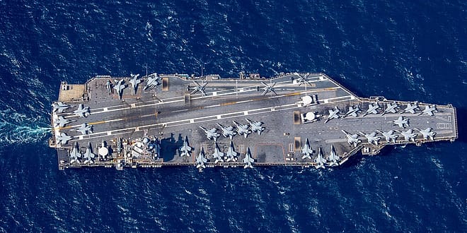 O USS Gerald Ford é alimentado por reatores nucleares que possuem 333 metros de comprimento por 78 de largura. Descrito pela Marinha dos EUA como uma “cidade flutuante”, o porta-aviões abriga 4,6 mil militares e pode operar por mais de duas décadas sem reabastecimento de combustível. Com 100 mil toneladas de deslocamento, o navio carrega mais de 75 aeronaves, entre caças de última geração, aviões de guerra eletrônica, helicópteros MH-60 Seahawk e aeronaves de alerta antecipado.