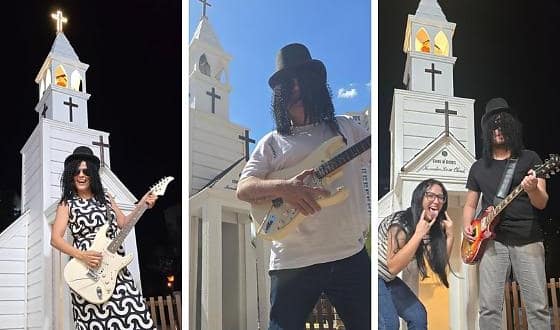 Fãs da banda americana de rock Guns N’ Roses já têm feito fotos icônicas em Cuiabá, Mato Grosso, antes mesmo do show na próxima sexta-feira (31), na Arena Pantanal. É que a Padaria do Moinho, entrou no clima roqueiro e montou uma réplica da capela que aparece no clipe da música “November Rain”.