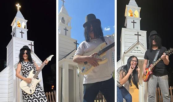 Fãs da banda americana de rock Guns N’ Roses já têm feito fotos icônicas em Cuiabá, Mato Grosso, antes mesmo do show na próxima sexta-feira (31), na Arena Pantanal. É que a Padaria do Moinho, entrou no clima roqueiro e montou uma réplica da capela que aparece no clipe da música “November Rain”.