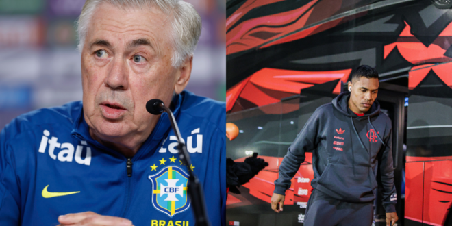 A provável escalação de Carlo Ancelotti para o Brasil é: Ederson, Militão, Marquinhos, Magalhães e Alex Sandro; Casemiro e Bruno Guimarães; Rodrygo, Vini Jr., Matheus Cunha e Estêvão.