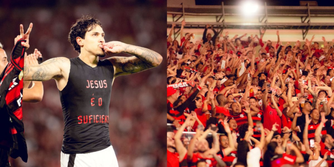As lesões que me tiraram por um período, queria compartilhar sobre o que me tirou da final da Libertadores. Eu me recuperava de uma fratura no braço e voltei a treinar. Estava com a expectativa lá no alto para a final, faltavam nove dias. Vou para o treino, chuto uma bola e o músculo da coxa arrebenta. Os médicos falaram que não teria jeito para jogar a final. Quando paro para pensar nesse dia desse treinamento, fui orando desde o carro, do meu condomínio até o CT do Flamengo. E aconteceu isso no treino —, relatou Pedro.