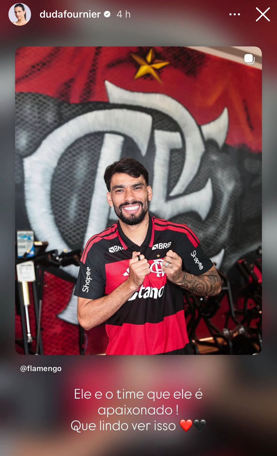 Importante frisar que essa não é a primeira postagem de Duda Fournier festejando o retorno de Lucas Paquetá ao Flamengo. Antes mesmo de chegarem ao Rio de Janeiro, a esposa do atleta compartilhou diversos vídeos da euforia da família em atuar pelo Rubro-Negro.