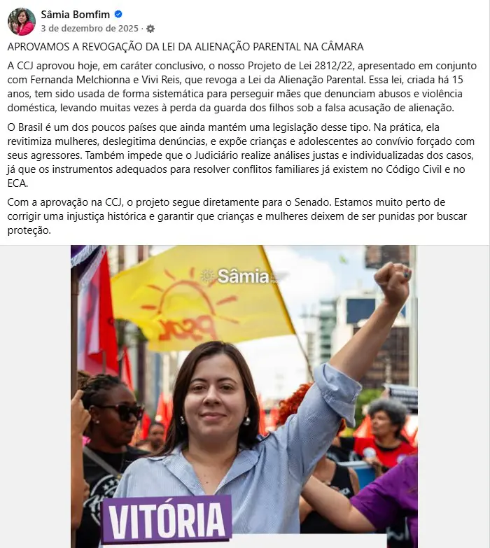 As autoras do projeto, no entanto, querem acabar com a Lei de Alienação Parental (LAP) e já conseguiram aprovação na Comissão de Constituição e Justiça (CCJ) da Câmara dos Deputados, em dezembro de 2025. O projeto continua em tramitação no Congresso.