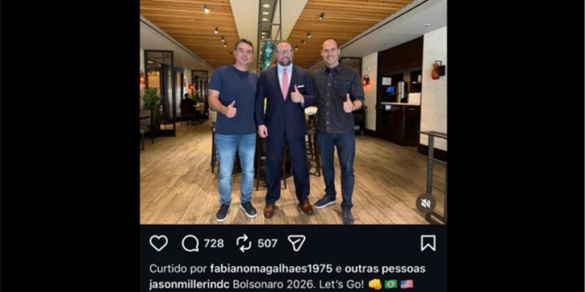 Miller já havia manifestado seu apoio a Flávio no final do mês passado, após um encontro entre os dois na Conferência de Ação Política Conservadora (CPAC), que aconteceu no Texas.