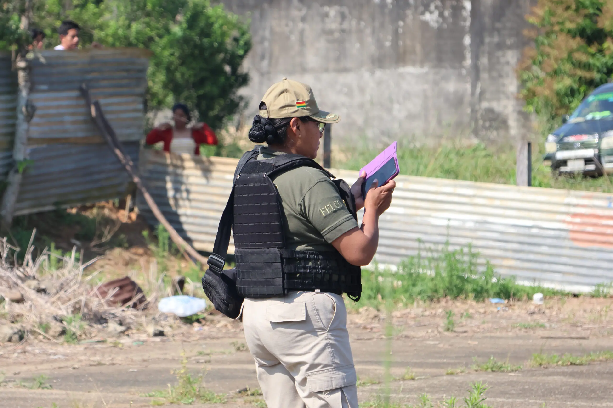 Policiais da Força Especial de Luta Contra o Crime (Felcc) chegaram ao local para colher depoimentos e investigar o incidente.