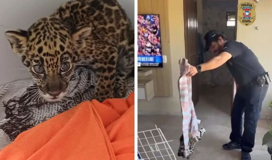 O animal estava bastante debilitado e mal conseguia se locomover. Mesmo assim, ele foi filmado brincando com um pano que foi usado para colocá-lo na caixa de transporte.