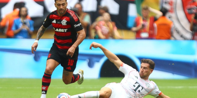 A partida começou com o Flamengo nervoso, e o Bayern aproveitou, fazendo 2 a 0, com Erick Pulgar (contra) e Harry Kane. Na raça, o Rubro-Negro diminuiu com Gerson, soltando uma bomba, ‘afundando’ Manuel Neuer. Porém, ainda no primeiro tempo, Goretzka ampliou.