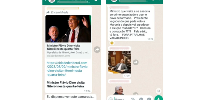 Em abril deste ano, Dino processou por crime contra a honra um servidor público de 66 anos por críticas feitas em um grupo de WhatsApp de um condomínio em Niterói (RJ). O comentário do idoso foi “Ministro que visita e se associa ao crime organizado e quer o povo desarmado (…). Fora ptralhas vagabundos”. No processo, o ministro do STF pede indenização de R$ 30 mil por danos morais.