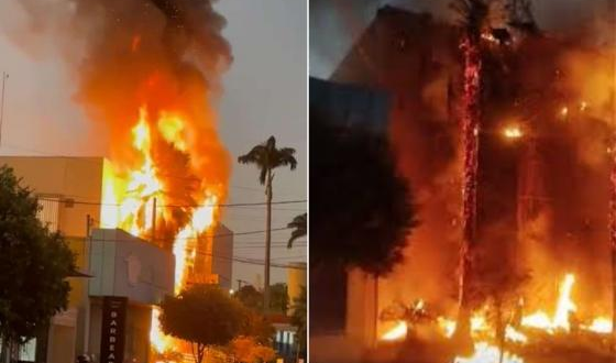 Um incêndio de grandes proporções atingiu o prédio do Cartório do 4º Ofício de Rondonópolis (a 278 km de Cuiabá) na tarde desse sábado (26). Vídeos gravados por moradores que passavam pela região mostram o pânico ao ver a fachada do estabelecimento sendo destruída pelas chamas.