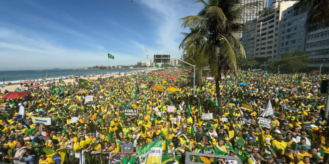 Na tradicional orla de Copacabana, entre os milhares de manifestantes que se reuniram neste domingo, duas presenças de destaque: o senador Flávio Bolsonaro (PL-RJ) e o governador do Rio de Janeiro, Cláudio Castro. O parlamentar carioca afirmou, em entrevista ao site Metrópoles durante o evento, que a sanção imposta pelo governo americano a Alexandre de Moraes é uma “vergonha brasileira”.