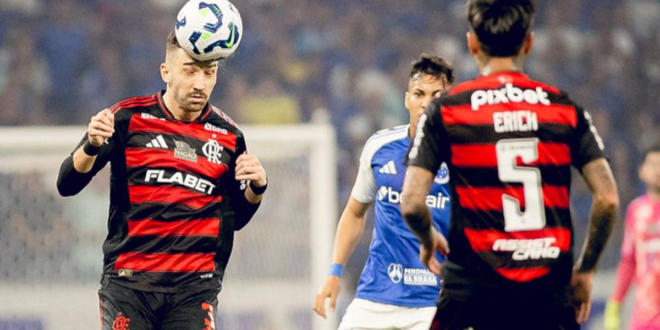 De La Cruz quase de redimiu aos 17′. Em cobrança de escanteio, o uruguaio colocou a bola na cabeça de Léo Ortiz, que testou forte para o gol. Porém, Cássio fez espetacular defesa, salvando o Cruzeiro. Do lado mineiro, só Kaio Jorge assustava ao Flamengo. Com 30′ jogados, o atacante soltou a bomba de fora da área, Rossi espalmou e a bola explodiu no travessão.