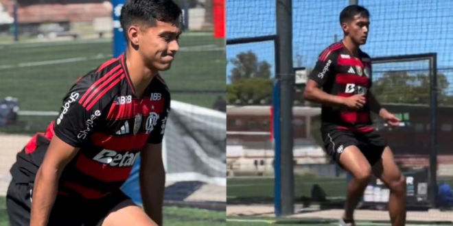 Argentino Rodrigo Atencio apareceu treinando com a camisa do Flamengo nesta segunda-feira (05)