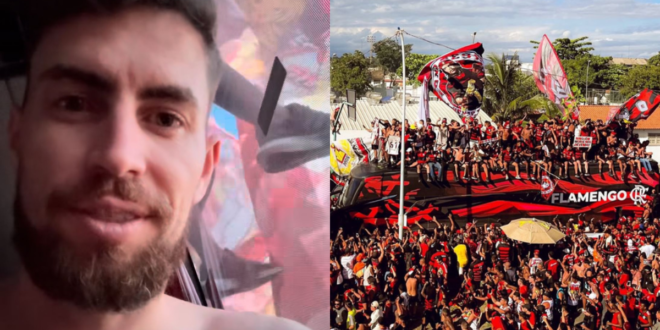 “É, eu perdi minha camiseta, mas isso é o mínimo por vocês. Vamos. Rumo à Glória Eterna, vamos!”, disse Jorginho em vídeo publicado no ‘Instagram’. Além disso, o atleta também compartilhou outros momentos da festa da torcida do Mengão.
