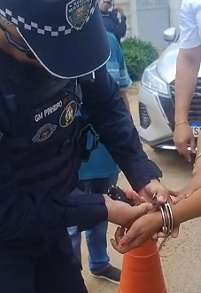 Após algum tempo de confusão, a mulher é retirada da viatura da Guarda Municipal, tem as algemas retiradas e é liberada.
