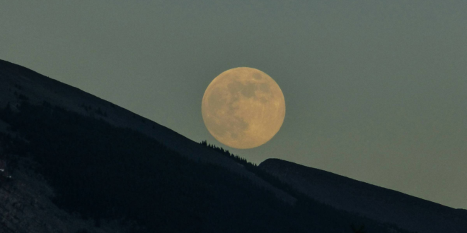 A Lua cheia será visível durante toda a noite de 12 de abril. O melhor momento para observá-la é logo após o pôr do sol, quando nasce no horizonte e parece visualmente maior devido à ilusão óptica.