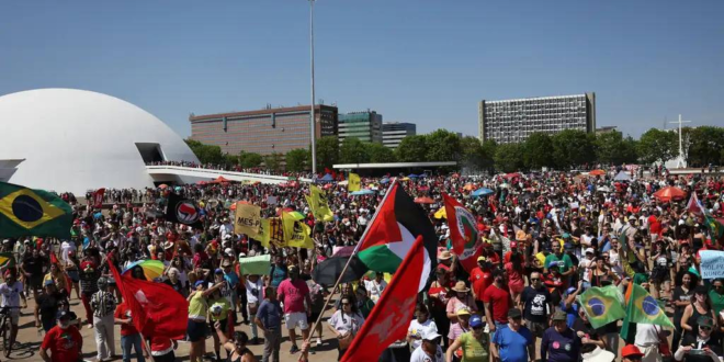 Em Brasília, os manifestantes se concentraram em frente ao Museu Nacional da República e seguiram em marcha até as proximidades do Congresso Nacional.