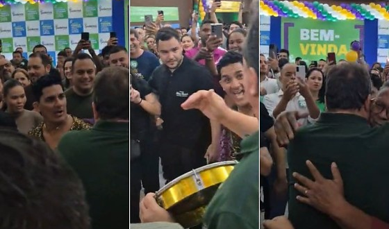 Em meio aos cumprimentos e abraços de caravanas vindas do interior, o presidente da Assembleia Legislativa seguiu em direção à banda que animava o evento. No palco, Max recebeu um pandeiro de um dos músicos e acompanhou o ritmo da apresentação.