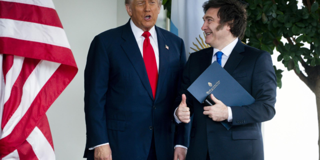 Os mercados da Argentina reagiram nesta sexta-feira (14) com forte alta após o anúncio do acordo comercial e de investimentos firmado entre os governos de Javier Milei e Donald Trump, dos EUA, que prevê a redução de tarifas e novas facilidades para o comércio bilateral entre os dois países. O índice S&P Merval da Bolsa de Buenos Aires subiu 3,8%, enquanto as ações de empresas do setor agropecuário, siderúrgico e de alumínio registraram ganhos de até 23%, segundo o jornal Clarín e a agência EFE.